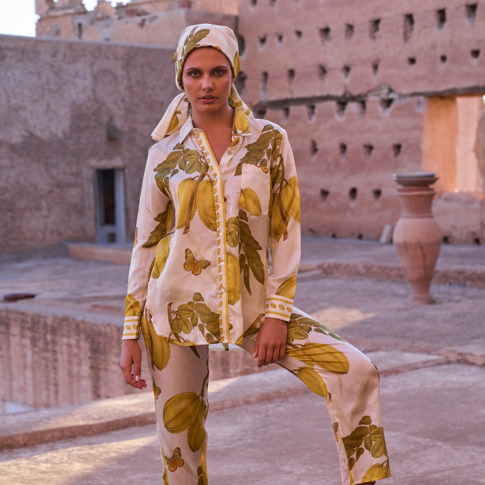 Inspirada en los riads, palacios y vibrantes mercados de Marrakech, esta colección combina estampados del desierto con siluetas fluidas y telas lujosas como la seda y el lino. Prendas elegantes y versátiles, pensadas para acompañarte desde tus vacaciones hasta ocasiones especiales.