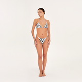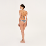 Calzón de bikini estilo brasilero con tiras fijas y elástico corrugado en la espalda. Pieza estampada con un diseño exclusivo de Aguaclara, confeccionada en Perú con tela italiana.