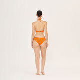 Un calzón de bikini de corte clasico. Pieza estampada con un diseño original de Aguaclara, confeccionada en Perú con tela italiana.