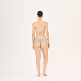 Calzón de bikini con tiras fijas, diseñado con corte brasileño y detalle fruncido en la parte posterior. Pieza estampada con un diseño original de Aguaclara, confeccionada en Perú con tela italiana.