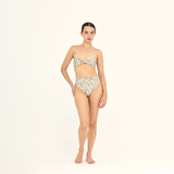 Calzón de bikini de cintura y pierna alta, con corte brasileño y pretina diseñada para un ajuste perfecto. Pieza estampada con un diseño original de Aguaclara, confeccionada en Perú con tela italiana.