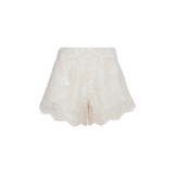 Short diseñado con pretina elástica en la espalda. Pieza de delicado encaje bordado exclusivo de Aguaclara, confeccionada en Perú con tela italiana.