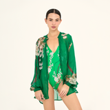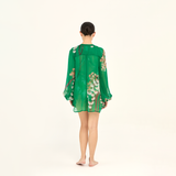 Blusa larga de manga completa y cierre de botones. Pieza estampada con diseño original de Aguaclara, confeccionada en Perú con suave tela italiana.