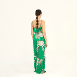 Pantalón diseñado con pretina elástica en la parte de atrás y sobre falda asimétrica removible. Pieza estampada con diseño original de Aguaclara, confeccionada en Perú con tela italiana.