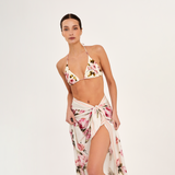 Pareo versátil que se puede usar de múltiples maneras: como falda, top o pañuelo. Pieza estampada con un diseño original de Aguaclara, confeccionada en Perú con tela italiana.