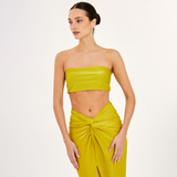 Top strapless estilo bandeau embolsado. Pieza en sutil brillo, confeccionada en Perú con tela italiana.