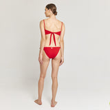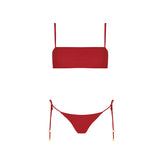 Calzón de Tiras Red, en diseño original de Aguaclara. Calzón de Tela Italiana con accesorios de metal dorado en tiritas de nuestra Colección 2024