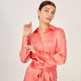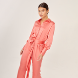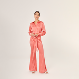 Pantalón Barbie, en color único y original de Aguaclara. Pantalón de 100% Seda Satin Italiana.