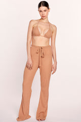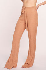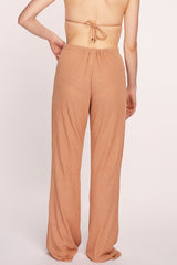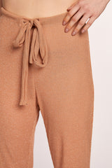 Bellísimo pantalón de color salmon blush metalizado, hecho en esta tela única de tejido de punto metalizada de Brasil. Amarra en cintura. Es el complemento perfecto para cualquier actividad de resort y cualquier ocasión. De día y de noche. Versatilidad es la idea.