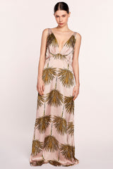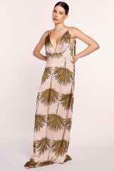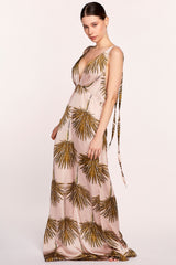 Lindísimo y sexy maxi vestido en dibujo Botánico Rosa, diseño original de Aguaclara. Tiene profundo escote en la parte de atrás y lindos detalles de lazos. Hecho en fino satín de 100% seda italiana.Pieza muy fácil de usar y ligera para transportarla a cualquier destino.Para ser usada de día y de noche, para cualquier ocasión. Versatilidad es la idea.