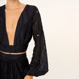 Blusa Ebano, en tela de fino Broderie exclusivo de Aguaclara.