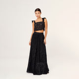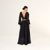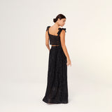Falda Maxi Ebano, en tela de fino Broderie exclusivo de Aguaclara. Falda de fino Broderie Italiano.
