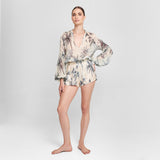 Short Grasse, en dibujo original de Aguaclara. Short de 100% Seda Satin Italiana.
