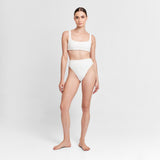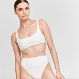 Top de Escote Profundo Antibes, en original tela de Jacquard texturizada.
