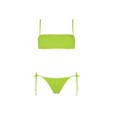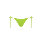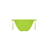 Calzón de Tiras Beach, en color verde original de Aguaclara. Calzón de Tela Italiana con accesorios de metal dorado en tiritas.