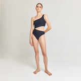 Traje de baño Asimétrico Black, en diseño original de Aguaclara. Traje de baño de Tela Italiana.