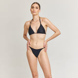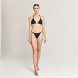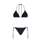Top Triangulo Corredizo Black, en diseño original de Aguaclara. Top de Tela Italiana con accesorios de metal dorado en tiritas.