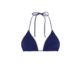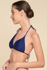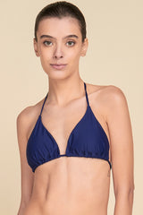 Top Triangulo Corredizo Blue, en diseño original de Aguaclara. Top de Tela Italiana con accesorios de metal dorado en tiritas.