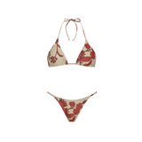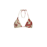 Top Triángulo Corredizo Dahlia, en original dibujo y tela satinada de Aguaclara. Top de Tela Italiana con accesorios de metal dorado en tiritas.