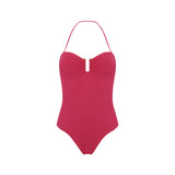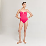 Traje de baño Strapless Fuchsia, en color unico & original de Aguaclara. Traje de baño de Tela Italiana con accesorio de metal dorado en forma de U en parte central.