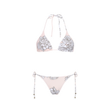 Calzón de Tiritas Hortense, en dibujo original de Aguaclara. Calzón de Tela Italiana con accesorios de metal dorado en tiritas.