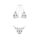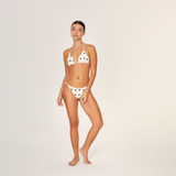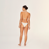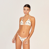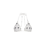 Top Triángulo Corredizo Palms, en dibujo original de Aguaclara. Top de Tela Italiana con accesorios de metal dorado en tiritas.