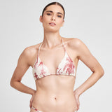 Top Triángulo Corredizo Provence, en dibujo original de Aguaclara. Top de Tela Italiana con accesorios de metal dorado en tiritas.