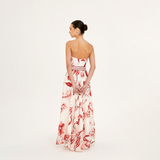 Maxi falda amplia con pretina y cierre lateral. Pieza estampada con un diseño exclusivo de Aguaclara, confeccionada en Perú con tela italiana.