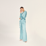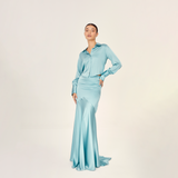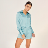 Camisa Crop Turquoise, en color único y original de Aguaclara. Camisa de 100% Seda Satin Italiana.